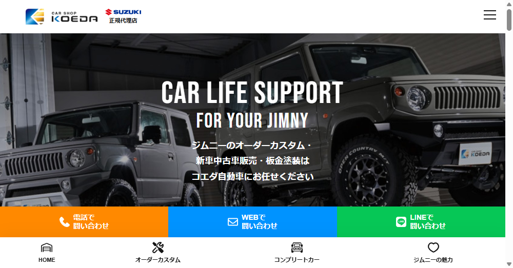 株式会社コエダ自動車はジムニーのオーダーカスタムや新車・中古車販売、板金塗装を専門とする企業であり平成28年6月1日に設立されました。