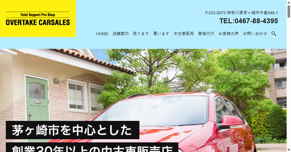 合同会社オーバーテイクカーセールスは神奈川県茅ヶ崎市に位置する創業30年以上のアットホームな中古車販売店です。