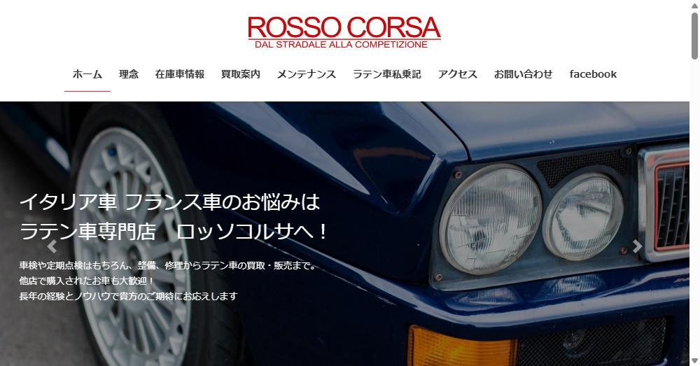 - ラテン車専門のロッソコルサは、21年の経験を活かし、イタリア車・フランス車の整備から買取・販売までを一貫してサポート。お客様の愛車を大切に扱います。