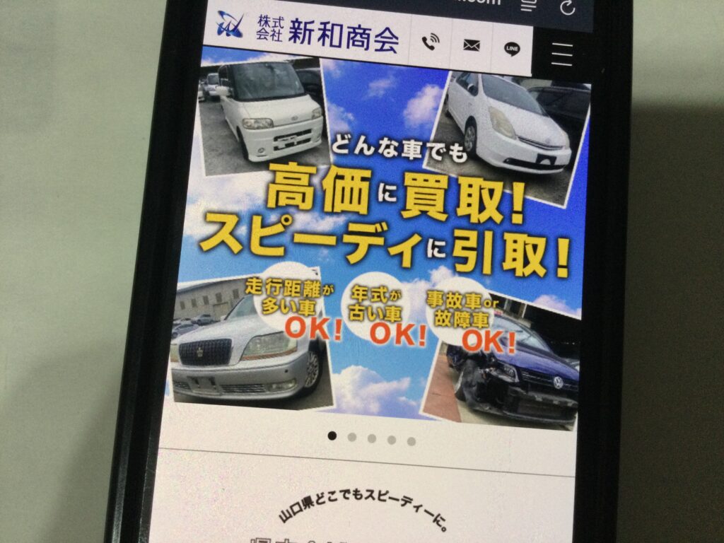 株式会社新和商会は山口県下松市に位置し、全ての車輌の引取・買取、リサイクル部品の生産・販売を行う企業です。