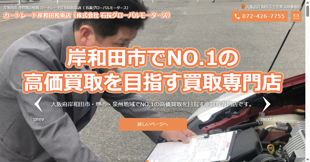 カートレード岸和田和泉店(株式会社 石長グローバルモータース)は大阪府岸和田市に位置する車買取専門店で、廃車や事故車の買取に特化しています。