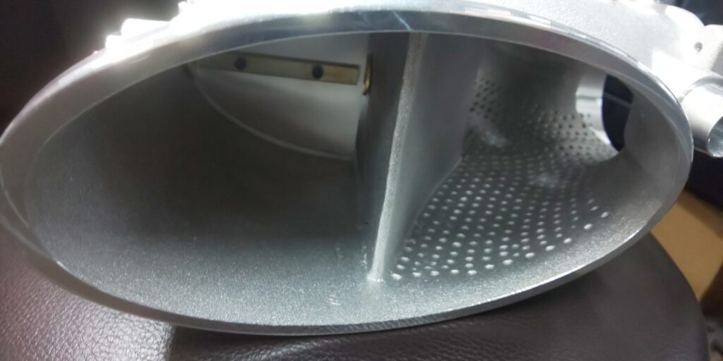 ビッグスロットルから吸入されたフレッシュエアはプレナム内で配分されると同時に流速が早められ