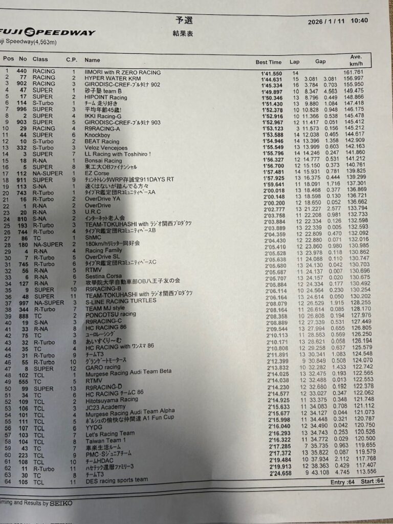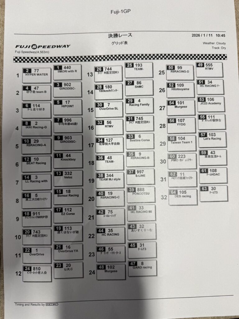 Fuji-1GPにご参加頂いたドライバーやご尽力頂いたスタッフの皆さまお疲れさまでした~<(_ _)>