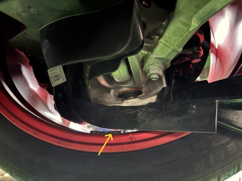 そんな992GT3RSですがフロントのタイヤ/ホイールを裏から見ると