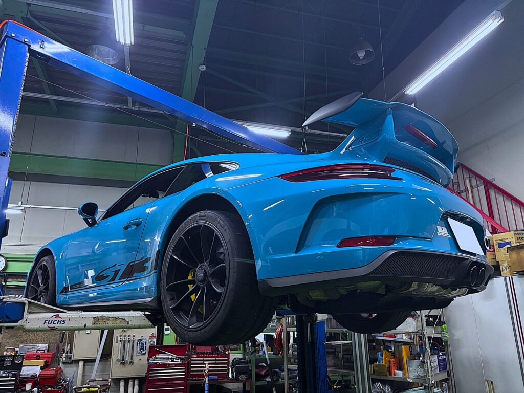今回はサイドのGT3ストライプが決まっているNさまの991.2GT3でエンジンオイル交換♪